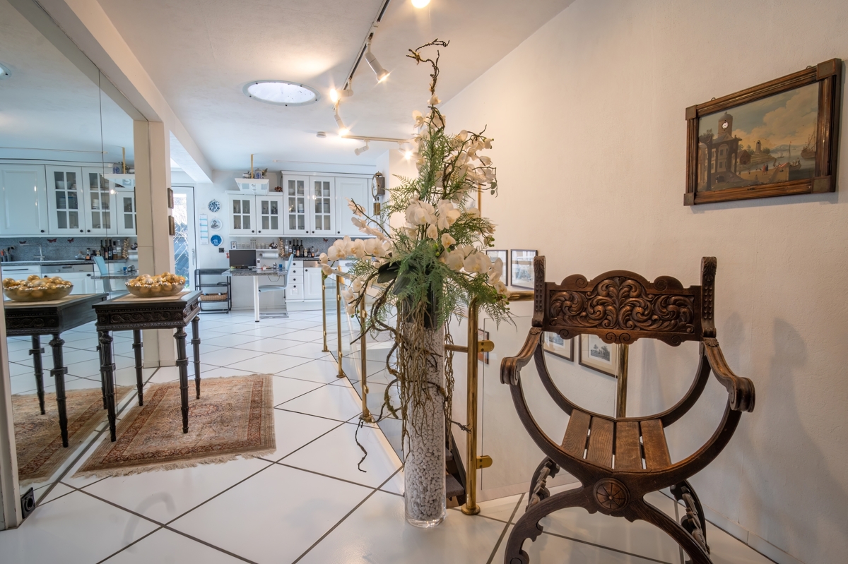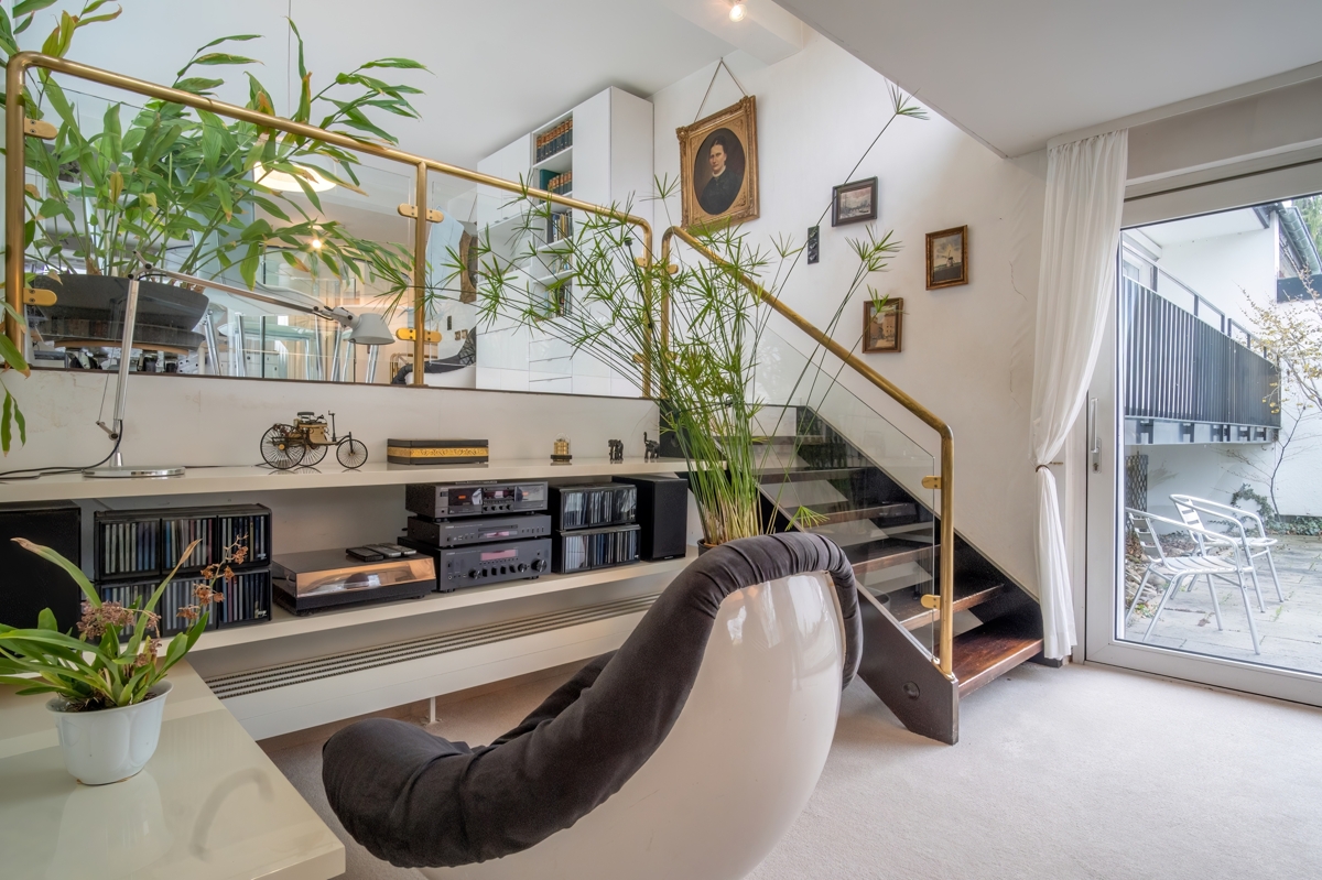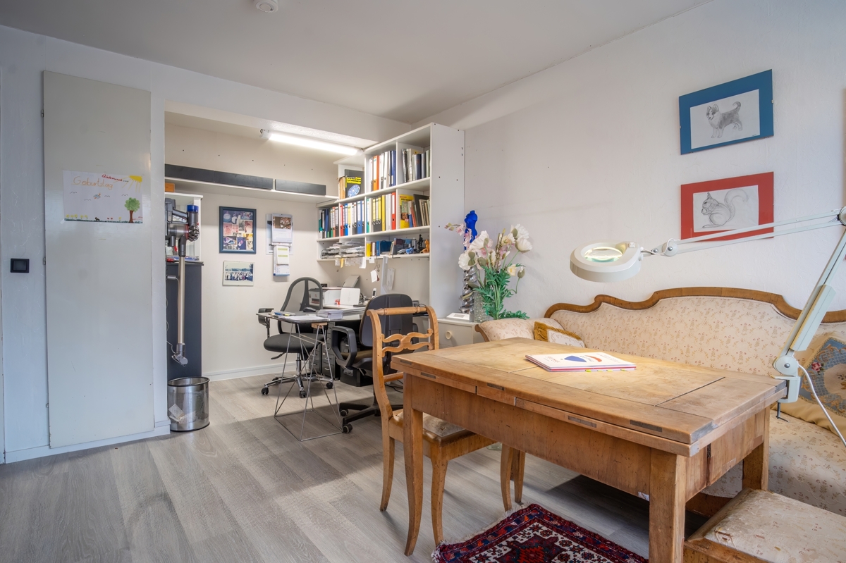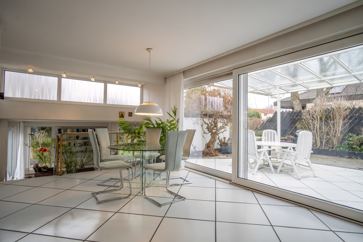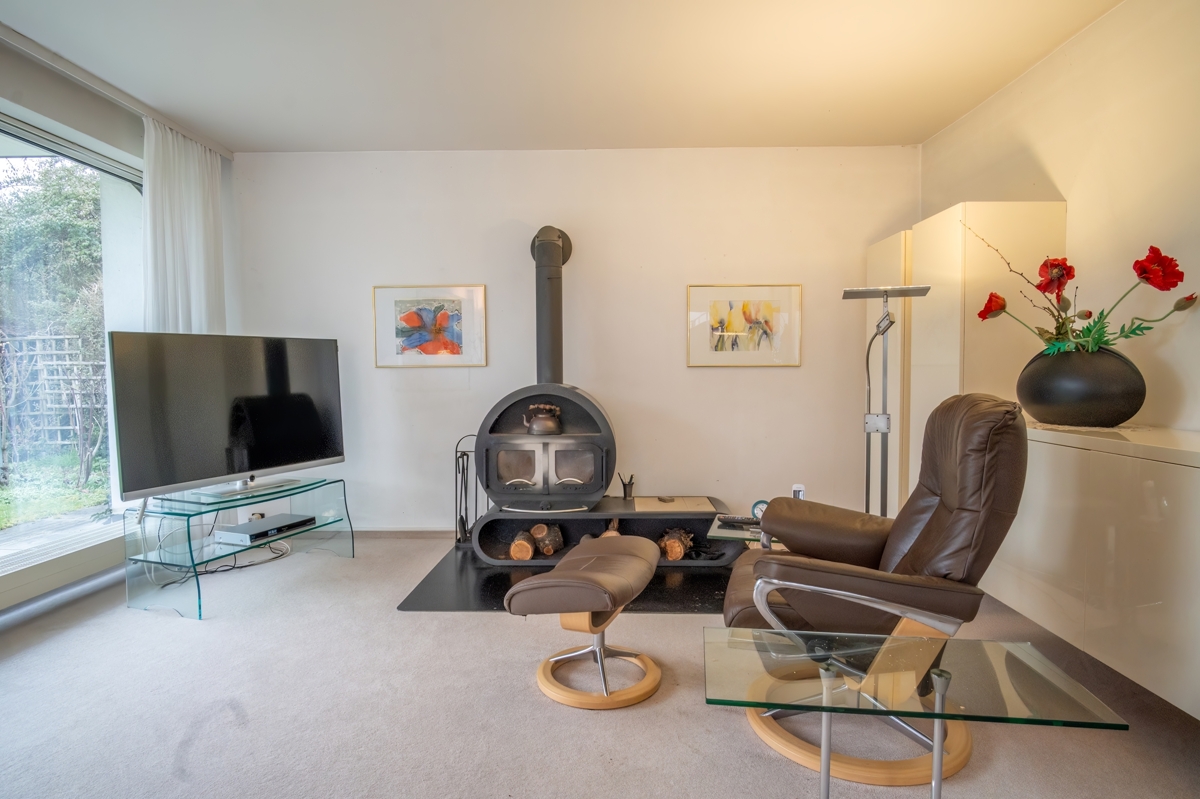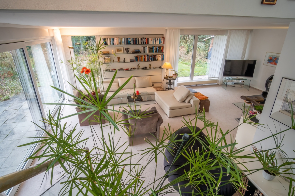 Auf einem Grundstück von ca. 659 m² wurde dieser Familienfreundlicher Winkel-Bungalow im Jahr 1963 mit einem besonderen Design massiv gebaut.Die Wohnfläche von ca. 160 m² verteilt sich auf das Erdgeschoss, einer versetzten Ebene mit Zugang zum Garten und das Untergeschoss.