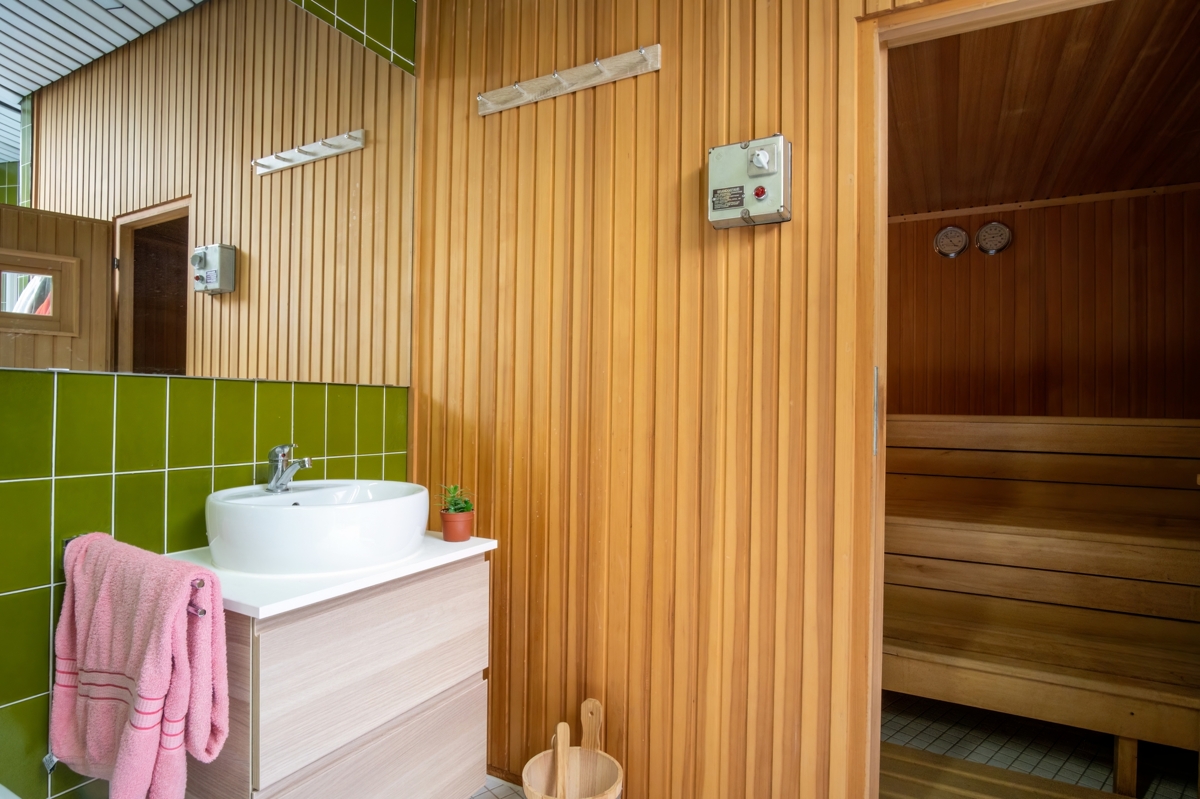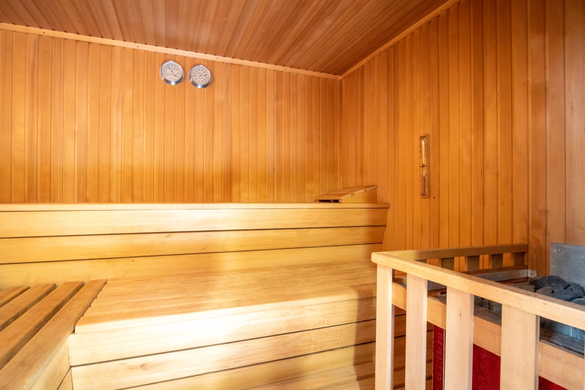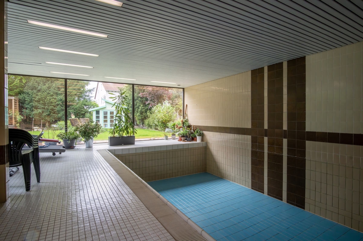 Ein weiteres Highlight des Gartens ist der überdachte Grillplatz, der ideal für gesellige Sommerabende mit Familie und Freunden geeignet ist. Der angrenzende Wellnessbereich ist eine Oase der Entspannung und lässt keine Wünsche offen. Hier finden Sie eine luxuriöse Sauna, eine moderne Dusche, ein separates WC sowie eine Fitnessecke. Besonders hervorzuheben ist das großzügige Hallenbad, das sich flexibel auch zu einem weiteren Wohnraum umgestalten lässt.