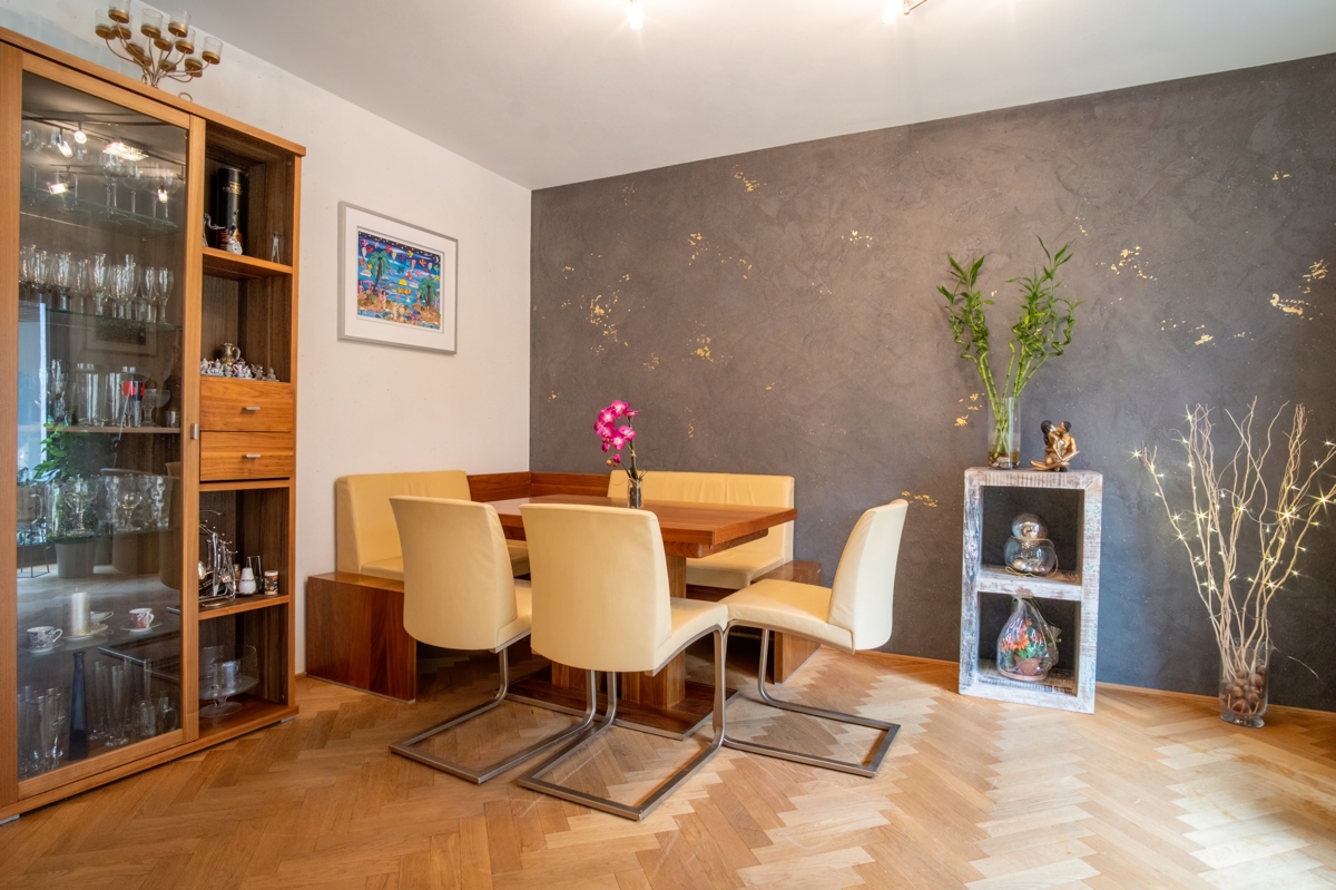 Auch für Ihre Fahrzeuge ist bestens gesorgt: Eine große Garage mit Platz für drei Fahrzeuge bietet direkten Zugang zum Wohnbereich und Garten. Zusätzlich stehen vor der Garage drei weitere Stellplätze zur Verfügung – perfekt für Familie und Gäste.