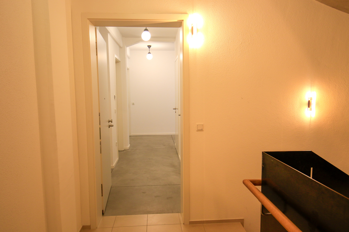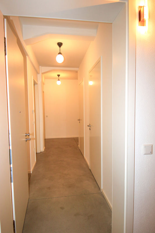- Polierter Sichtbeton im Wohn-Ess-Koch-Bereich, Flur und HWR.