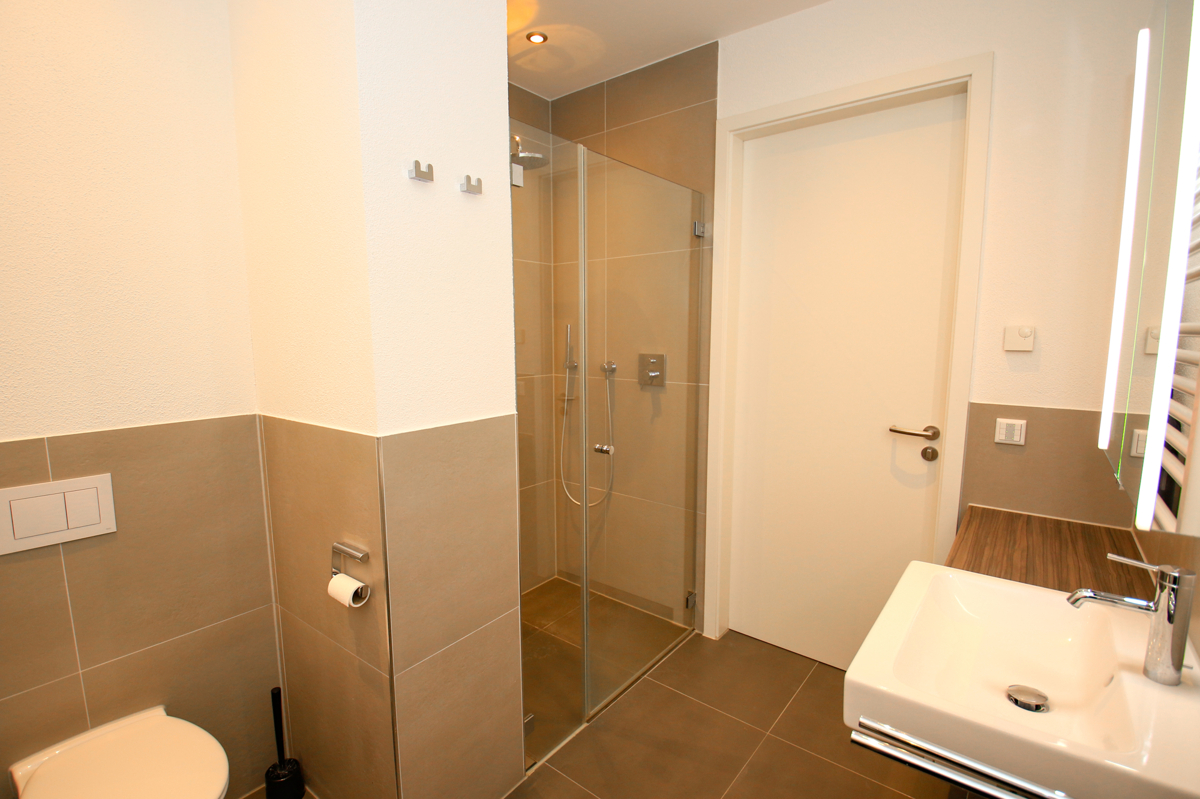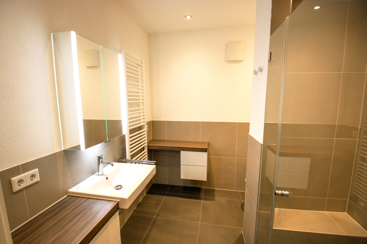 - Duschbad mit bodengleicher Dusche, Sitzgelegenheit, hochwertigen