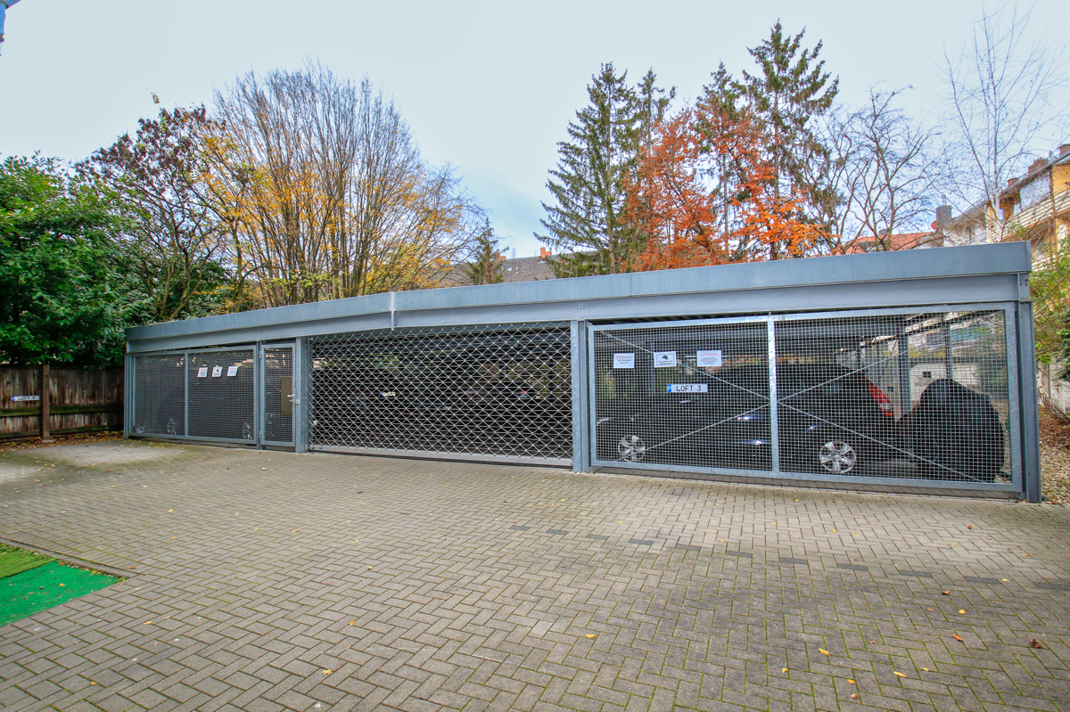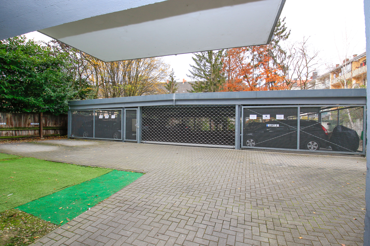 - PKW-Stellplatz im Carport mit elektrischem Rolltor.