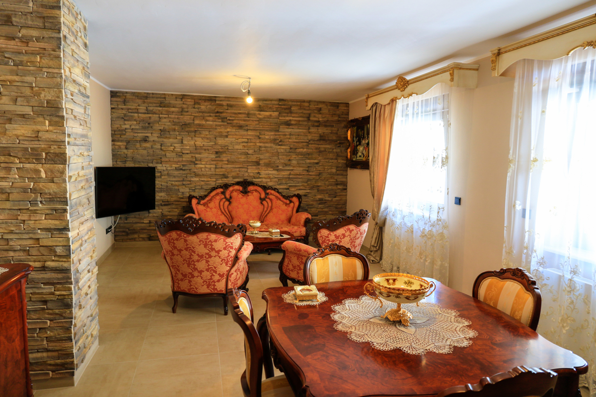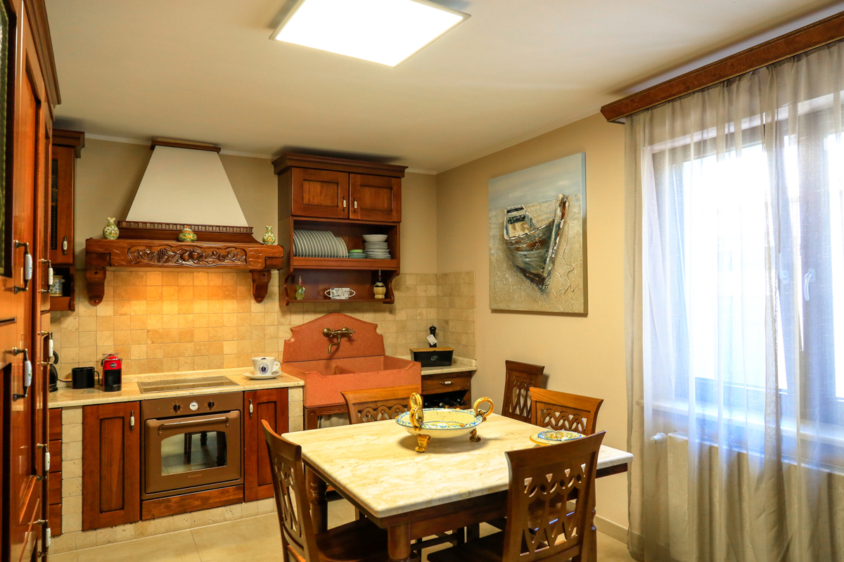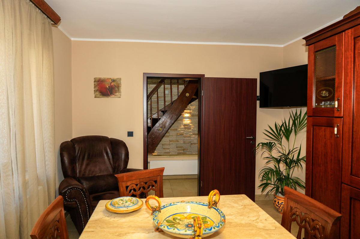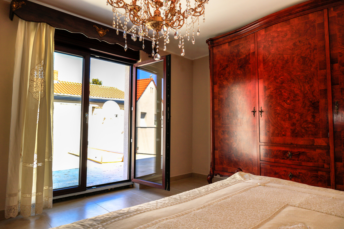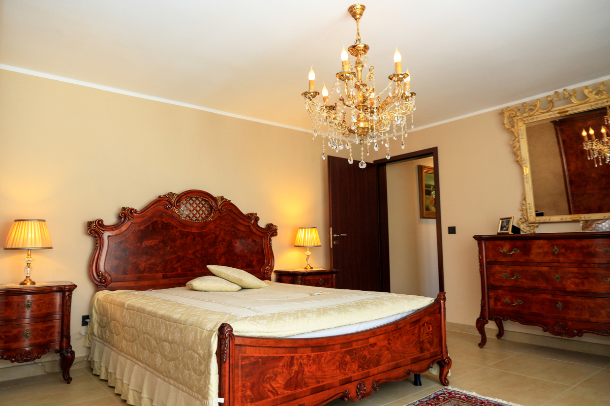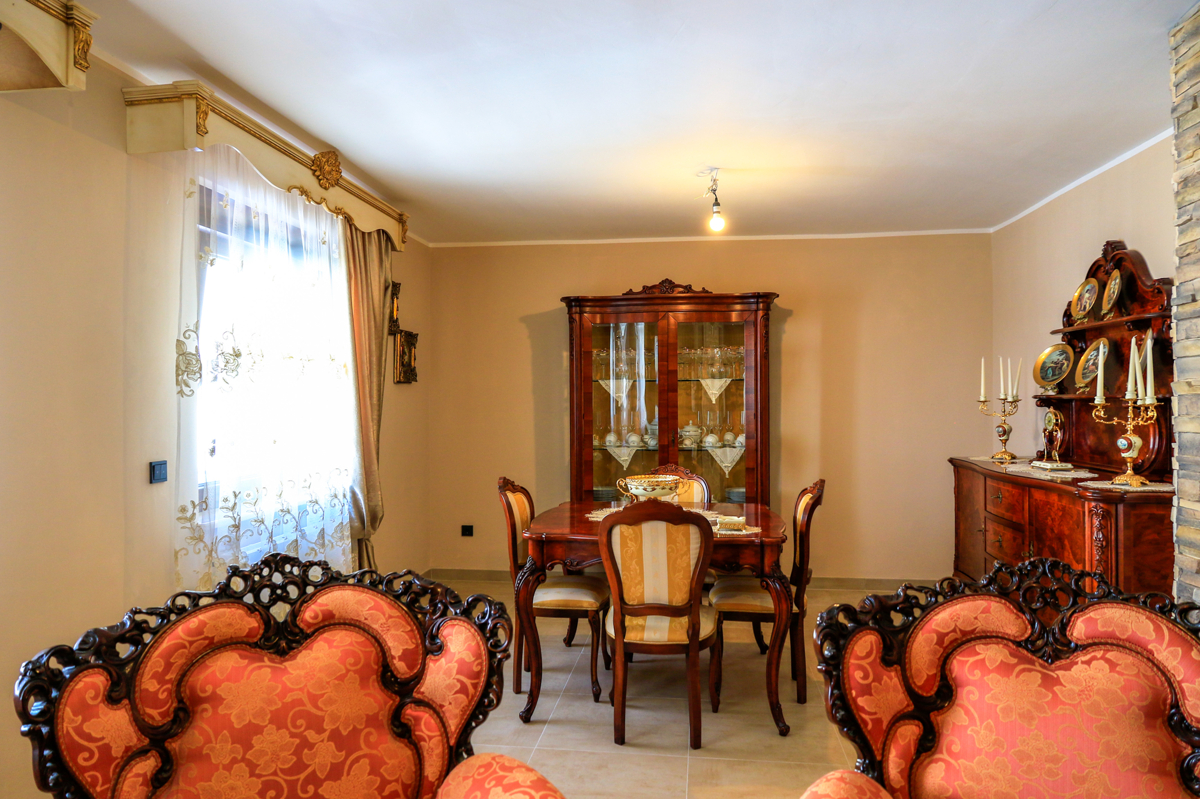 Das Einfamilienhaus überzeugt durch seinen mediterranen Stil, der sich in den Wänden und Böden widerspiegelt.