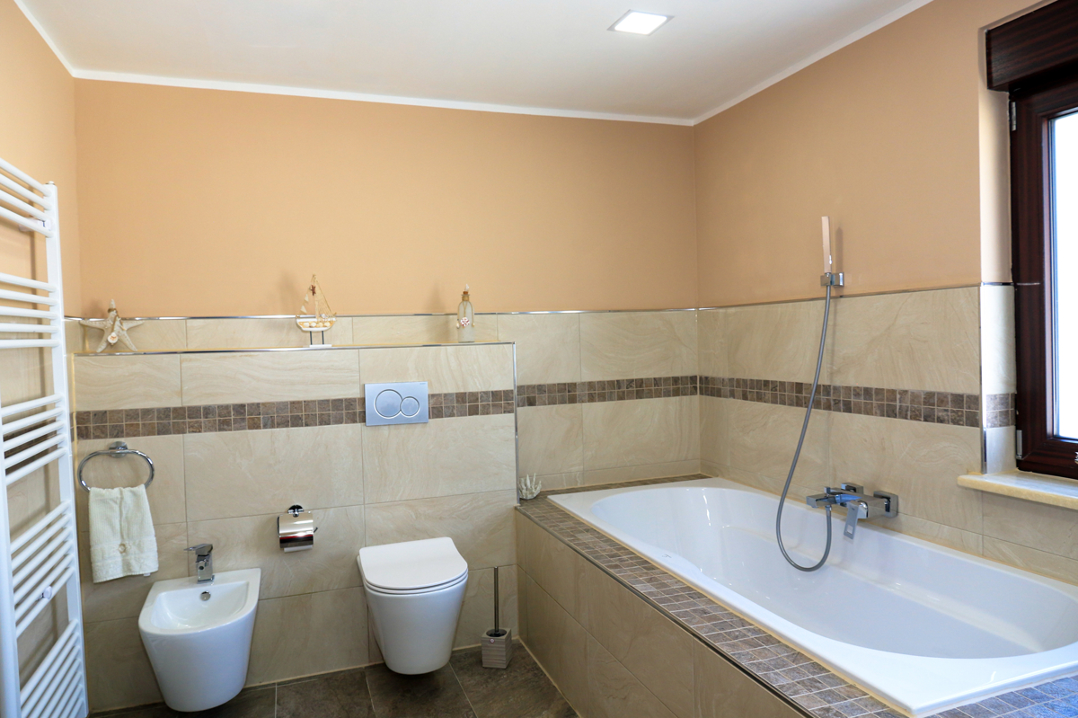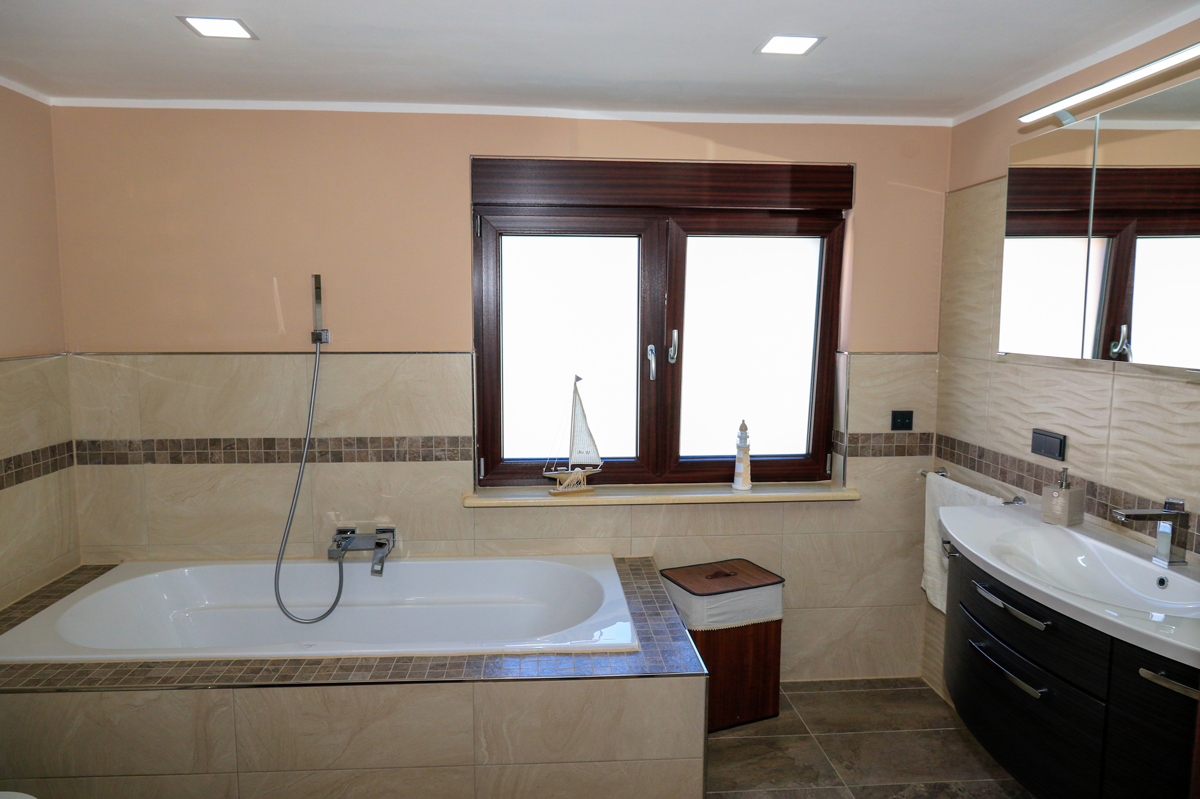 Das eine Badezimmer verfügt über eine Badewanne, welche zum entspannen nach stressigen Tagen einlädt.