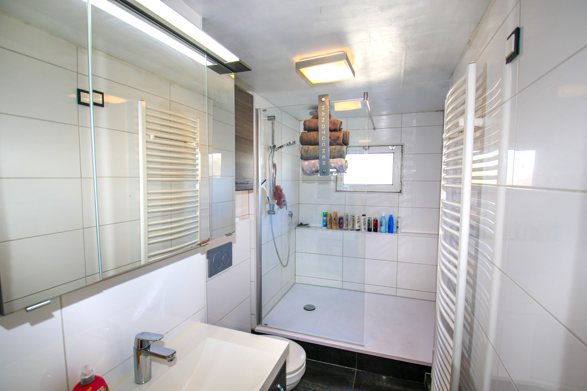 Im EG des HH erwartet Sie ein großzügiger Flur mit ausreichend Platz für einen Garderobenschrank, ein Hauswirtschaftsraum sowie eine extra breite Hauseingangstür, ein Bad mit extra großer Dusche und einer extra breiten Tür, WC und Waschbecken. Die hochwertige Küche ist mit modernen Geräten ausgestattet, darunter eine integrierte Kaffeemaschine. Das gr. Wohn-/Esszimmer beeindruckt durch eine Klimaanlage und mit direktem Zugang zur Terrasse und dem weitläufigen Garten, der mit einem beheizbaren Whirlpool für bis zu 5 Pax, einem Gartenhäuschen und einem Geräteschuppen ausgestattet ist. Die Terrasse misst ca. 6x4 m und bietet einen wunderbaren Ausblick in den Garten. Das OG, das über eine stilvolle Vollholztreppe mit Setzstufen erreicht wird, beherbergt das Elternschlafzimmer mit Klimaanlage und einem begehbaren Ankleidezimmer und einem franz. Balkon. Ein modernes großes Bad mit Badewanne, offener großen Dusche, Doppelwaschbecken und WC sorgt für zusätzlichen Komfort. Ein Arbeits- oder Kinderzimmer mit französischem Balkon, Klimaanlage rundet das Angebot auf dieser Etage ab.