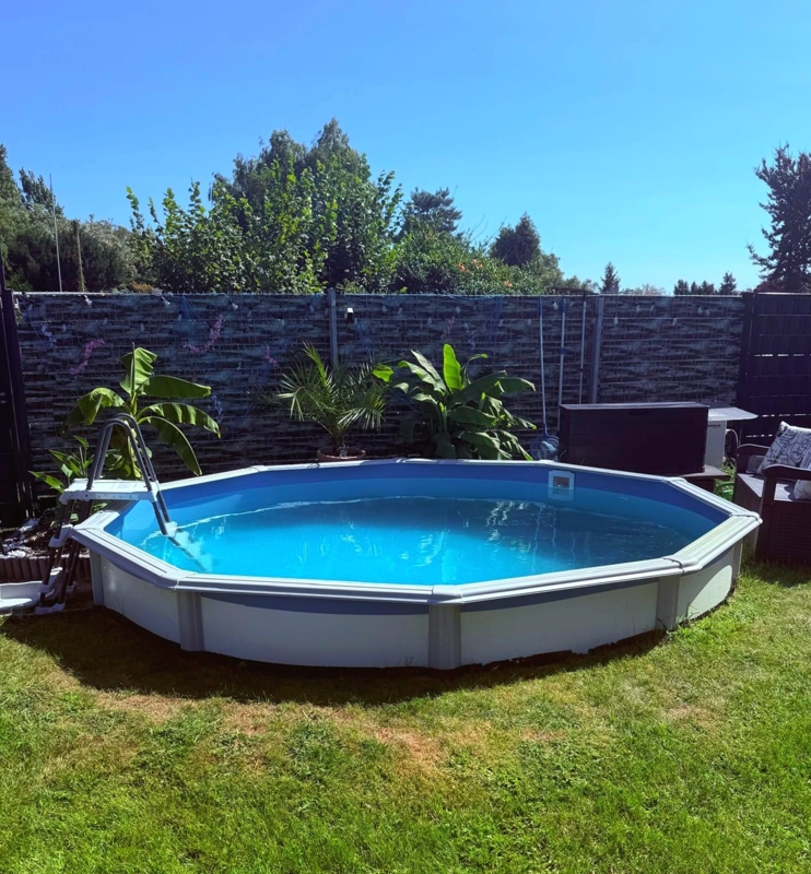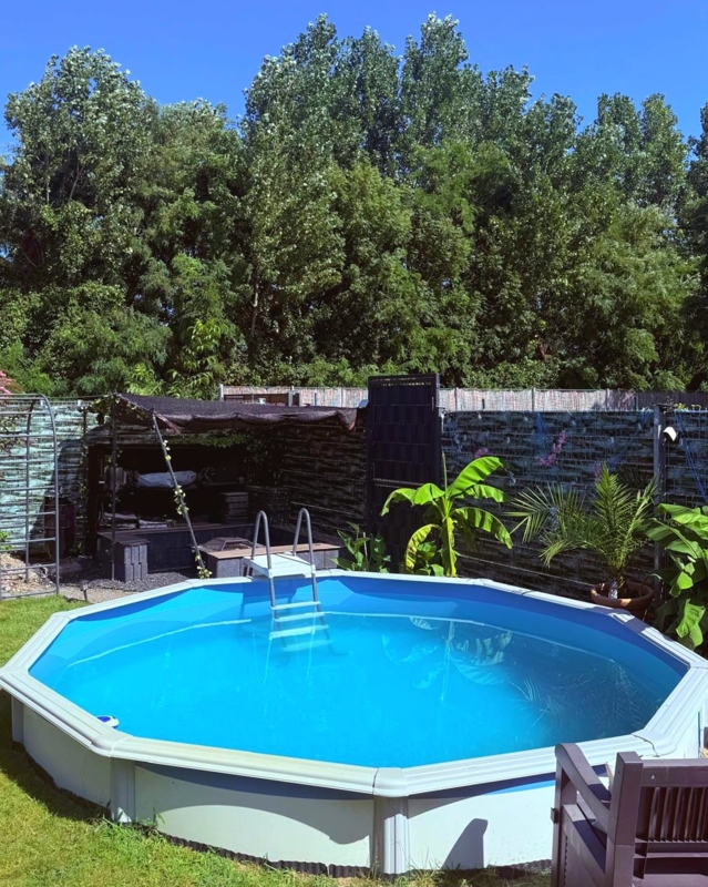 - Beheizter, eingelassener Pool (Ø 4 m, 1,34 m tief)