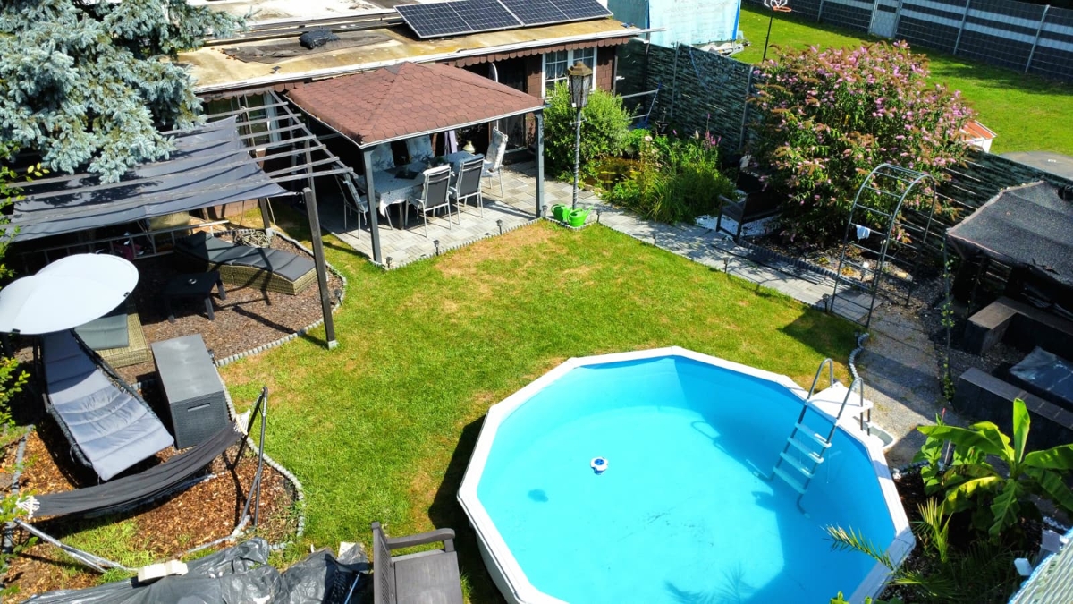 Willkommen in Ihrem persönlichen Urlaubsdomizil im beliebten Naherholungsgebiet Blaue Adria in Altrip!Dieses 234 m² große, vollständig umzäunte Grundstück vereint Privatsphäre, Komfort und Urlaubsfeeling – und das direkt vor Ihrer Haustür. Der beheizte, im Boden eingelassene Pool sorgt für Erfrischung an warmen Sommertagen, während der idyllische Teich und der gepflegte Gartenbereich für Entspannung und eine besondere Wohlfühlatmosphäre sorgen.