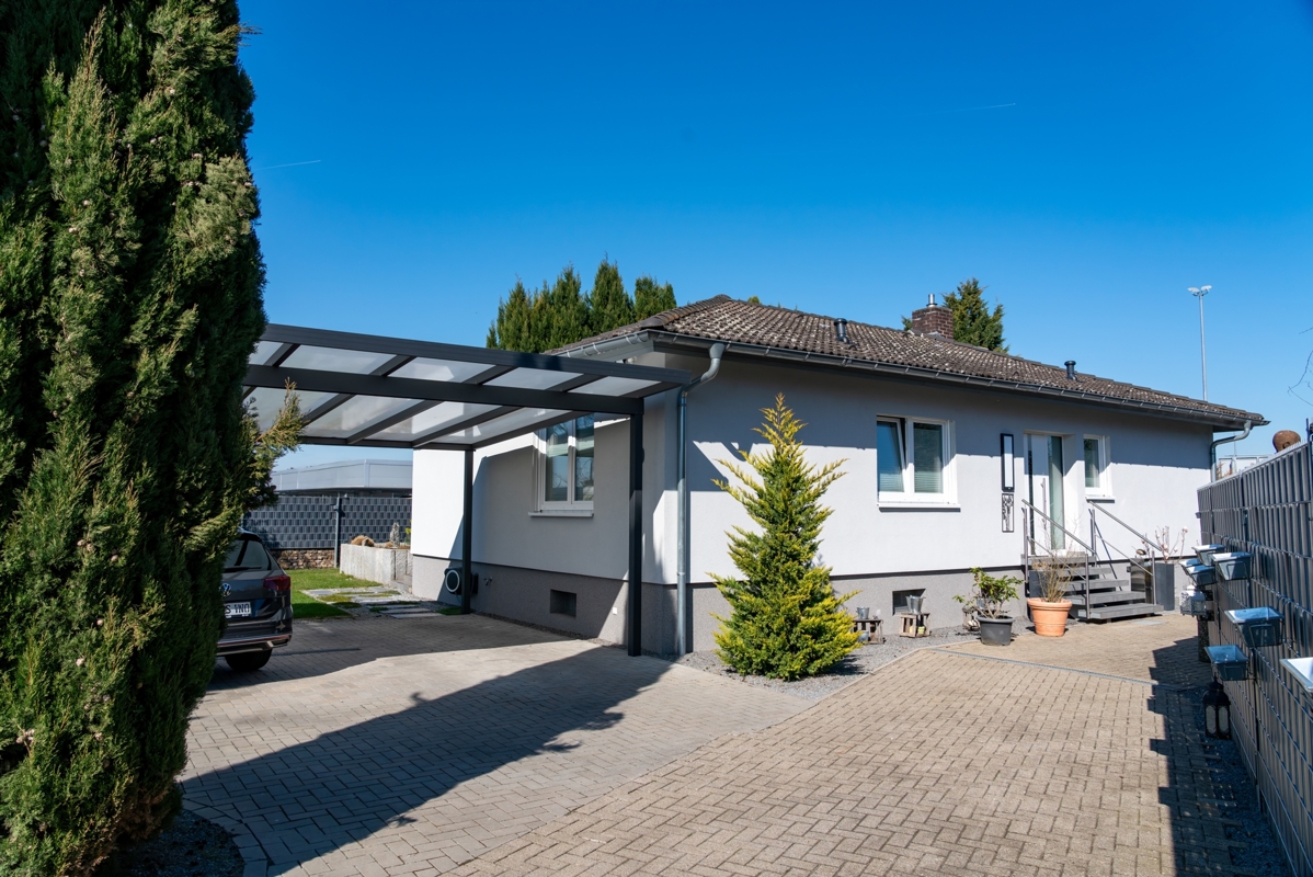 Neben der umfassenden Erneuerung der Elektrik und der Versorgungsleitungen wurde der Bungalow mit zahlreichen Annehmlichkeiten ausgestattet, die Ihr Leben komfortabler machen. Elektrische Rollläden bieten auf Knopfdruck Schutz und Privatsphäre, während der großzügige Carport Ihre Fahrzeuge zuverlässig vor Witterungseinflüssen bewahrt.