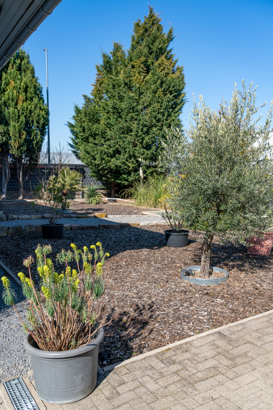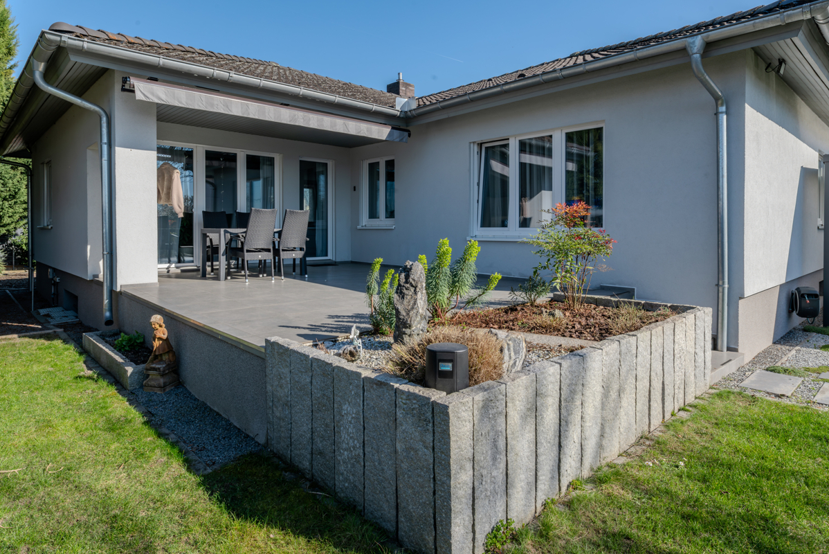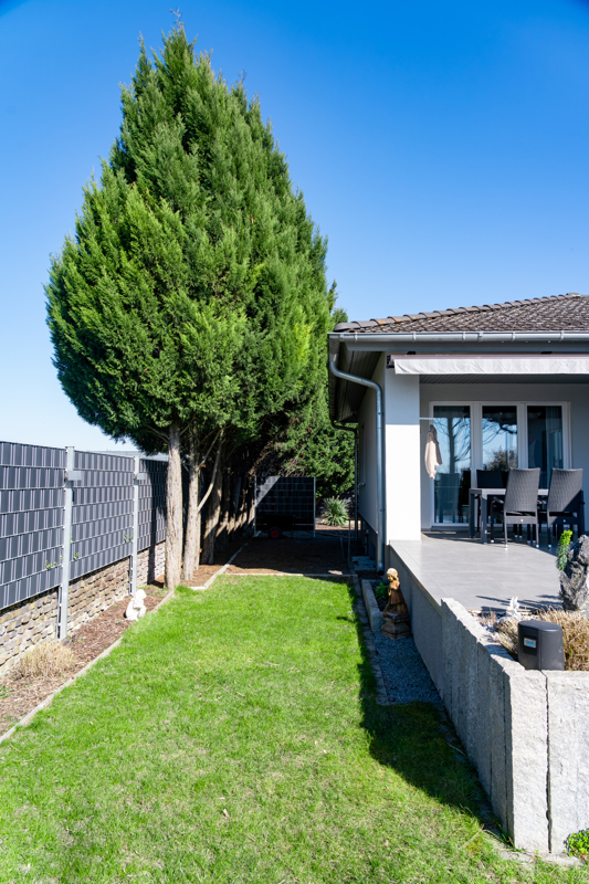 Der liebevoll angelegte Garten ist eine grüne Oase, die Ihnen das ganze Jahr über Freude bereitet. Dank des intelligenten Bewässerungssystems bleibt Ihre Pflanzenpracht stets gepflegt, ohne dass Sie sich darum kümmern müssen. Die große Terrasse bietet viel Platz für entspannte Stunden im Freien – ob beim Grillen mit Freunden oder beim Sonnenbaden.