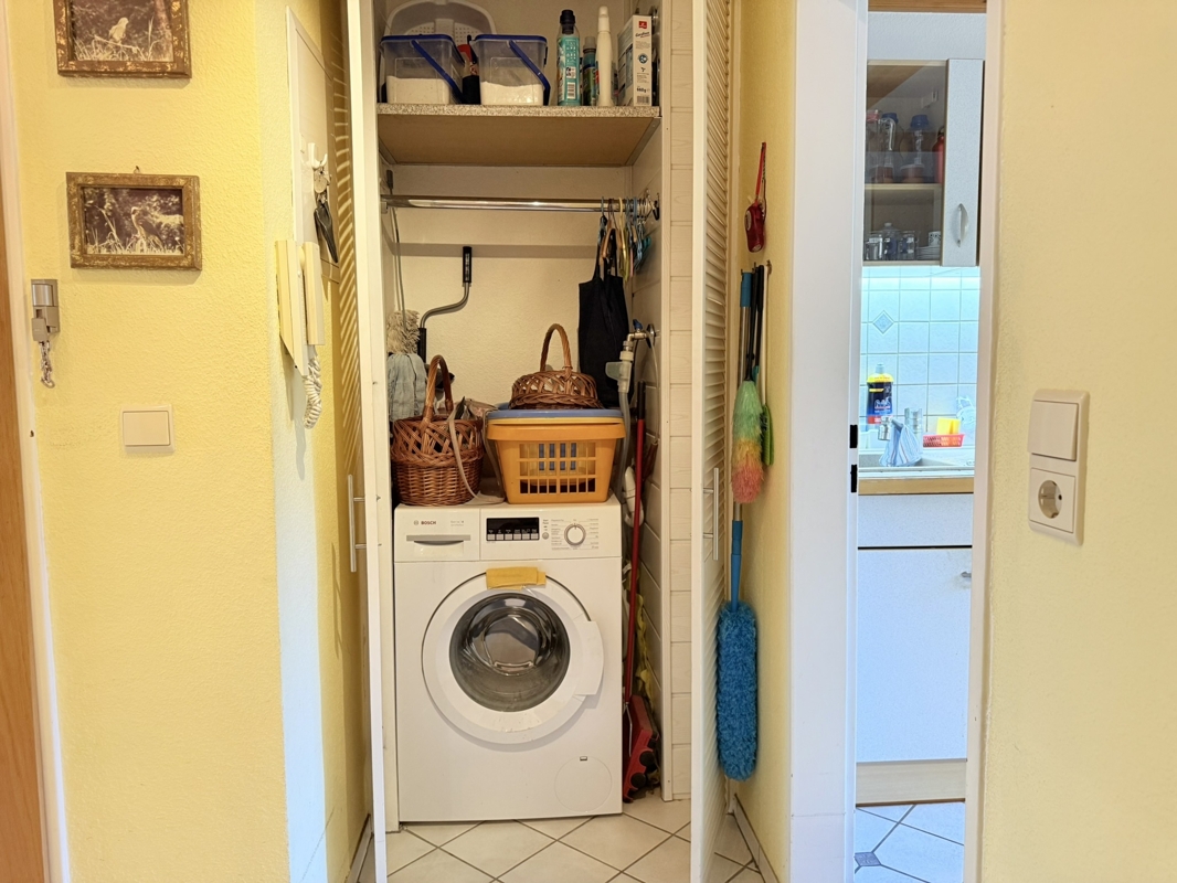 Zur Wohnung gehört ein separater Kellerraum mit gefliestem Boden und stabiler Metalltür. Eine Besonderheit ist, dass sich auch im Keller eine Gegensprechanlage befindet. Darüber hinaus steht im Dachspeicher ein eigener Abstellraum zur Verfügung sowie ein gemeinschaftlich nutzbarer Raum, ideal zum Wäschetrocknen.