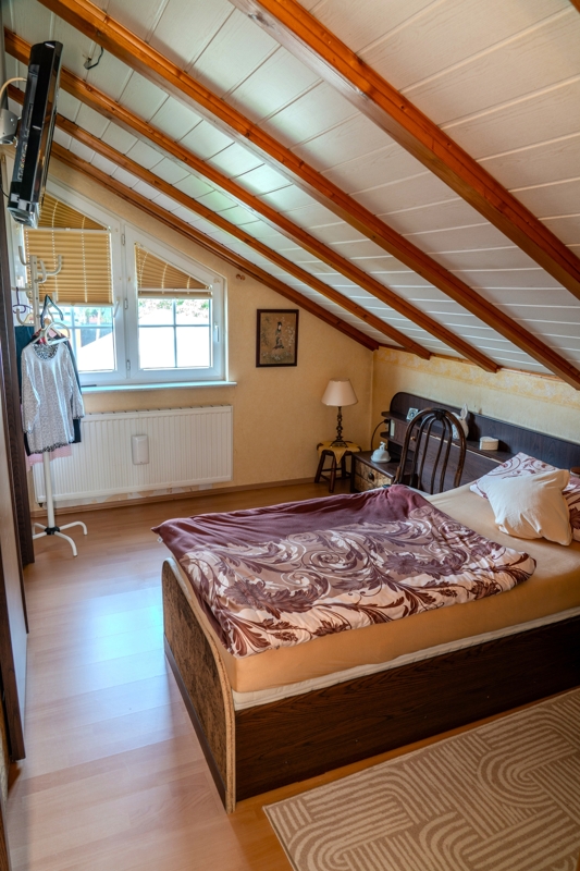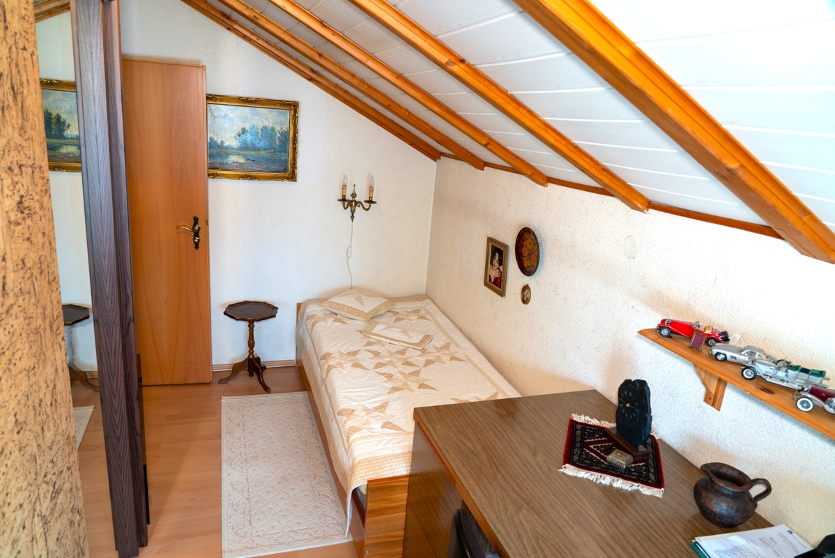 Das Obergeschoss überzeugt mit flexiblen Nutzungsmöglichkeiten. Das großzügige Schlafzimmer verfügt über eine Ankleide oder kann alternativ als Homeoffice genutzt werden. Zudem gibt es ein weiteres Zimmer, das sich ideal als Kinder- oder Gästezimmer eignet, sowie ein separates Gäste-WC.