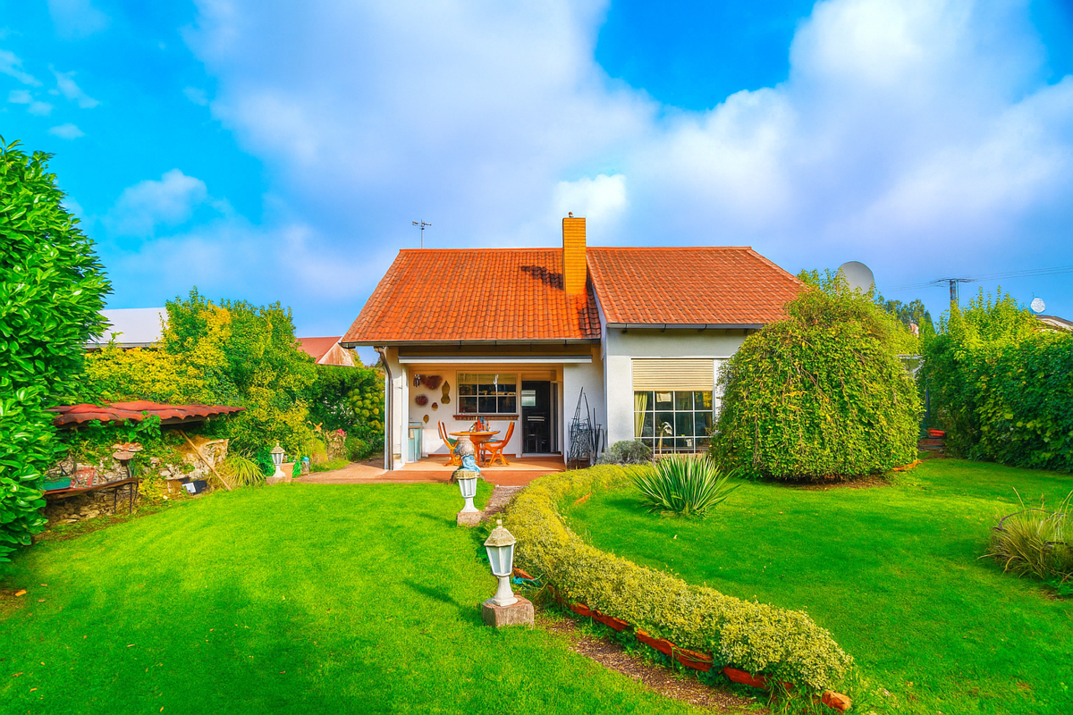 Das fast 600 m² große Grundstück ist ein echtes Highlight: Der gepflegte Garten begeistert mit üppigem Grün, geschmackvollen Pflanzungen und ausreichend Platz für Freizeit, Familie und Erholung. Auf der großen Südterrasse lassen sich warme Tage in vollen Zügen genießen – ob beim Frühstück in der Sonne oder bei gemütlichen Abenden im Freien.