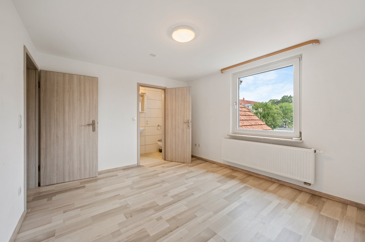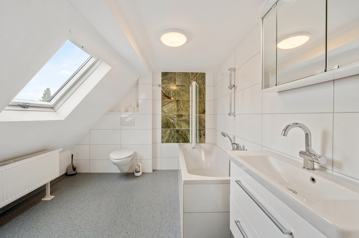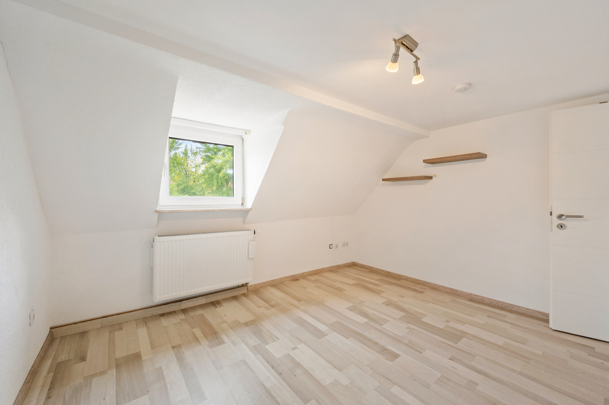 Im Dachgeschoss befindet sich ein weiteres Schlafzimmer sowie ein modernes, helles Badezimmer mit Badewanne.