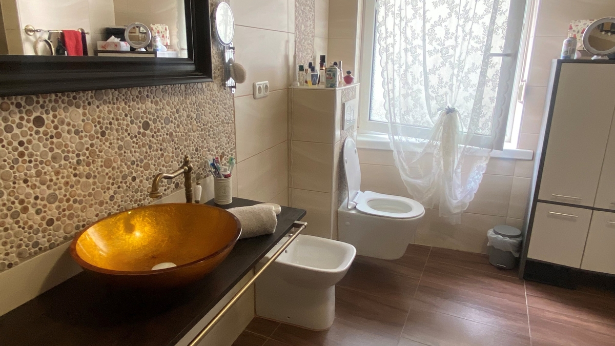 Das Tageslichtbad mit große Dusche wurde 2018 modernisiert.