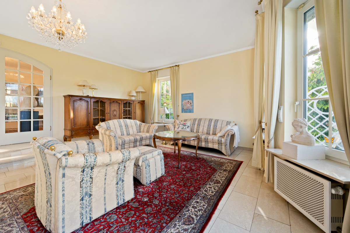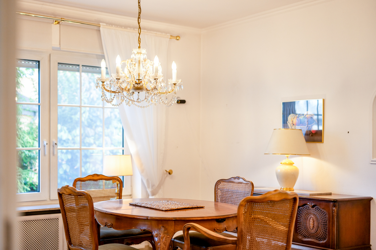Das Haus ist voll unterkellert und technisch hervorragend ausgestattet. Zur Ausstattung zählen eine moderne Viessmann-Brennwertheizung (Öl, zwei 2.500-Liter-Tanks), eine Hebeanlage, FI-geschützte Elektrik, zweifach verglaste Kunststoff-Sprossenfenster mit Gittern, elektrische Rollläden und hochwertige Marmorfliesen. Die vorhandene Alarmanlage und Videoüberwachung gehören nicht zum Verkaufsumfang und werden vor Übergabe entfernt – der künftige Eigentümer kann selbstverständlich eigene Sicherheitstechnik installieren.