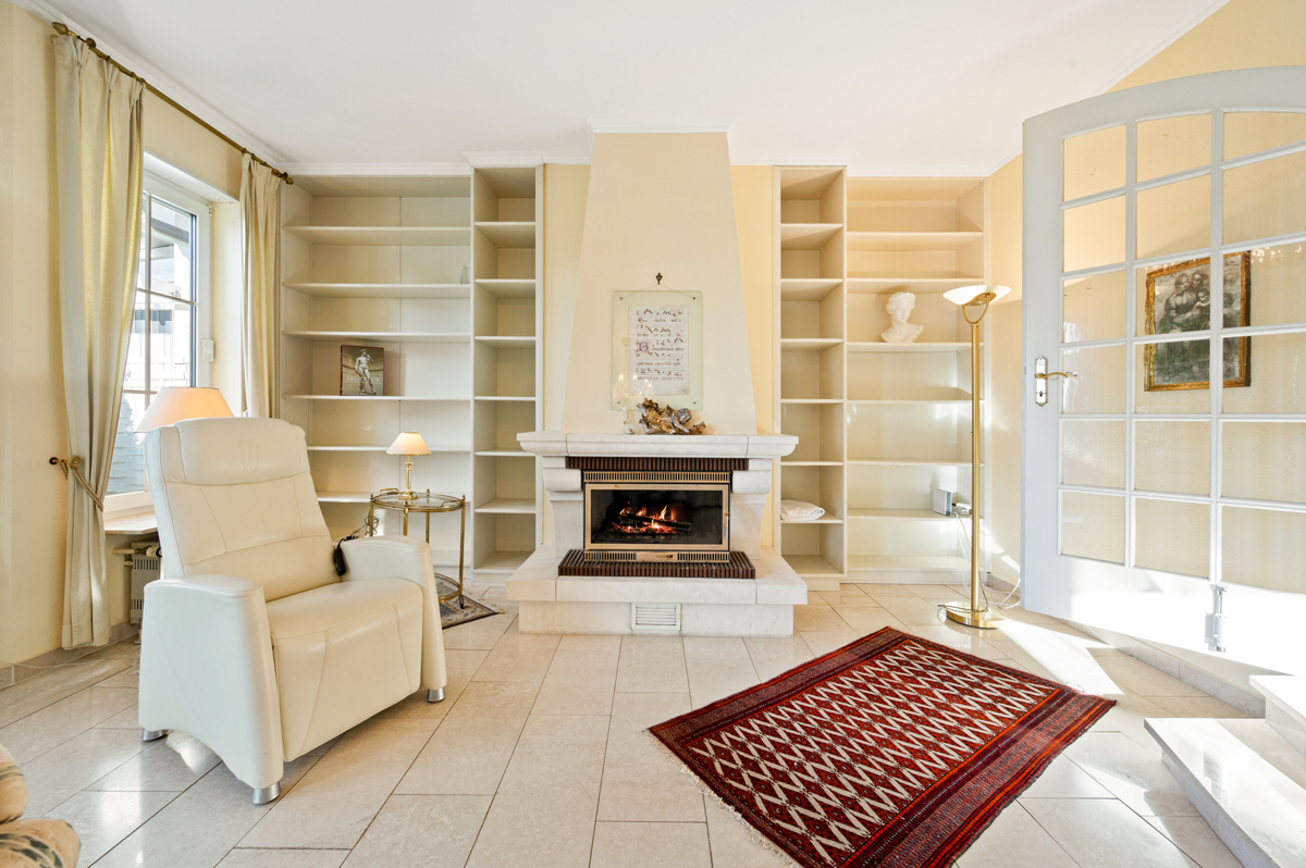Der vorhandene Kamin fügt sich harmonisch in das Wohnambiente ein; er besitzt derzeit allerdings keine Betriebserlaubnis mehr. Eine dekorative Ethanol-Lösung wäre jedoch problemlos möglich und würde das wohnliche Flair unterstreichen.