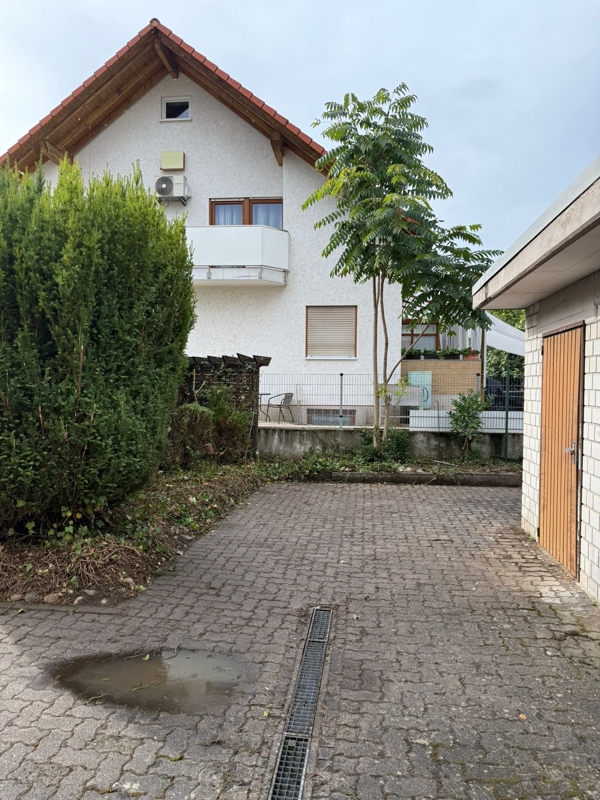 Zur Immobilie gehört zudem eine Garage; davor stehen weitere Stellflächen für 1–2 Pkw zur Verfügung.