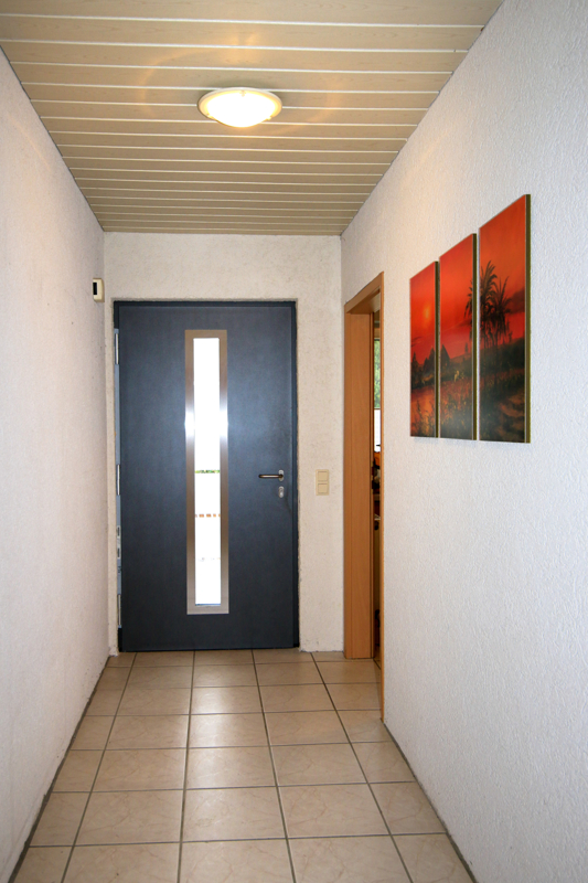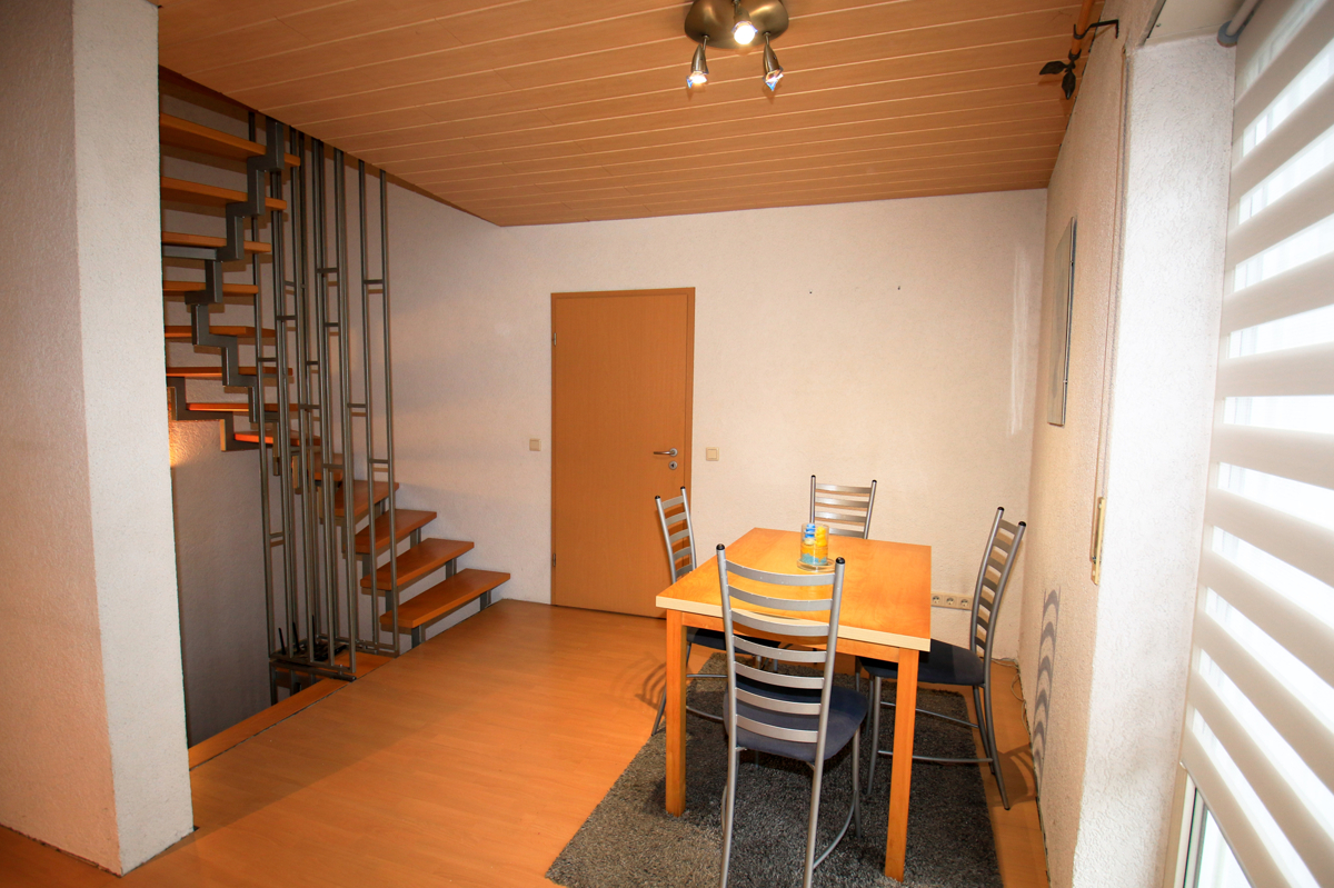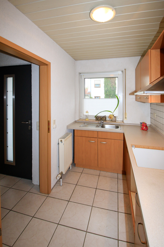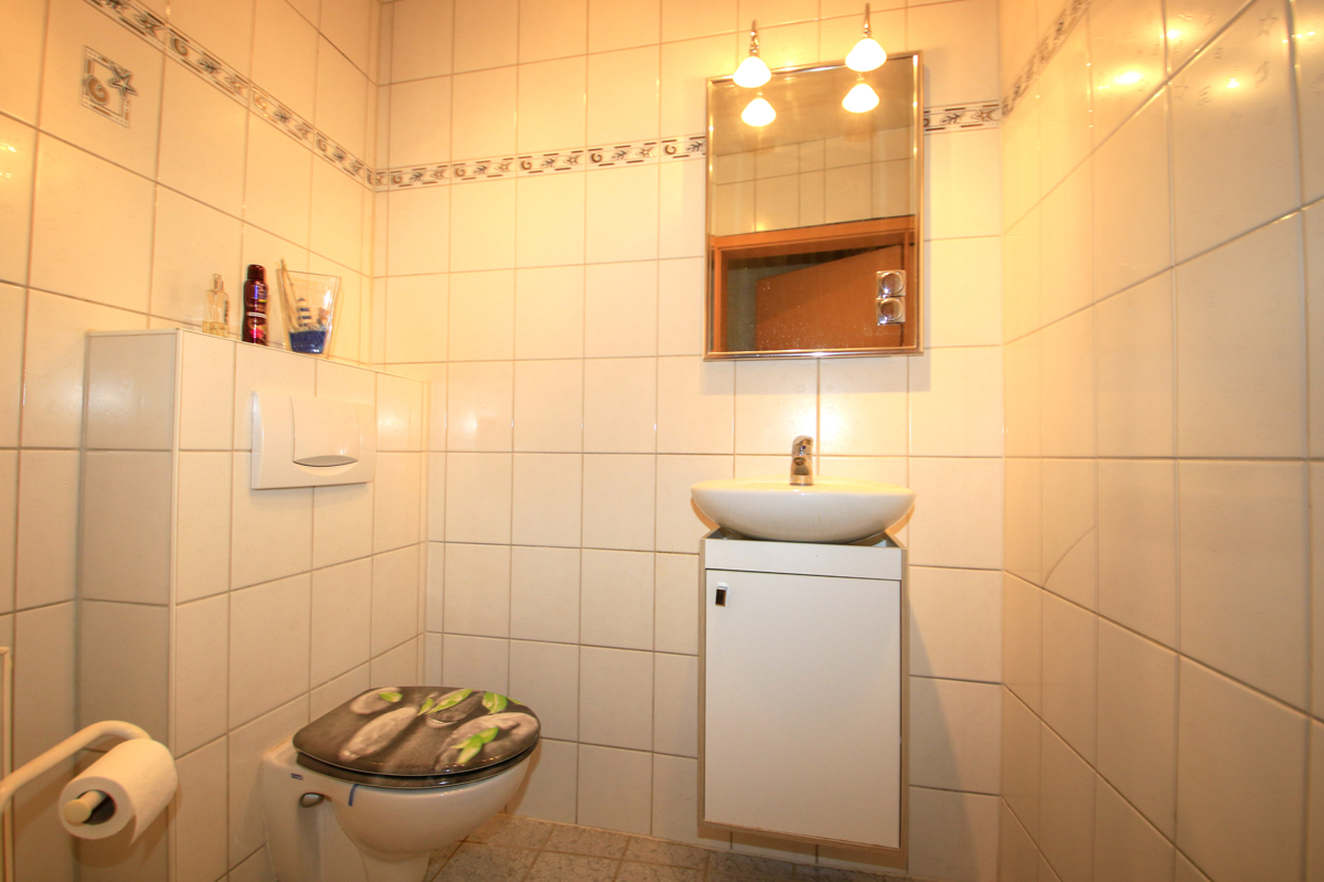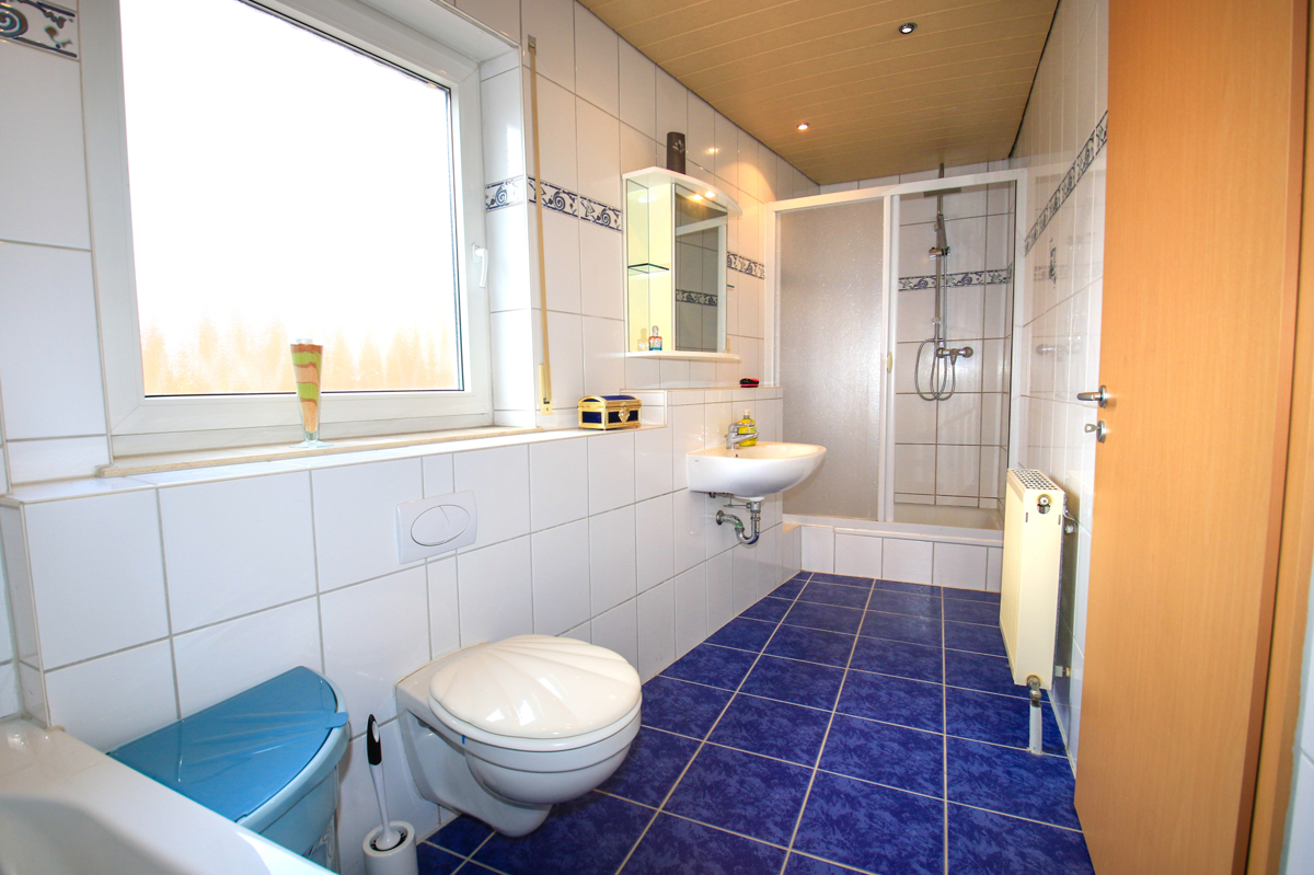 Das Erdgeschoss empfängt Sie mit einem freundlichen Flur, einem innenliegenden Gäste-WC, das bis unter die Decke gefliest ist, sowie einer separaten Küche. Das helle Wohn- und Esszimmer mit Laminatboden bietet sowohl einen Kabel- als auch SAT-Anschluss und gewährt über eine bodentiefe Terrassentür mit Wärmeschutzverglasung direkten Zugang zur ersten Terrasse und dem dahinter liegenden Garten. Auch alle weiteren Fenster im Haus sind mit Wärmeschutzverglasung versehen, wodurch ein angenehmes Wohnklima unterstützt wird.