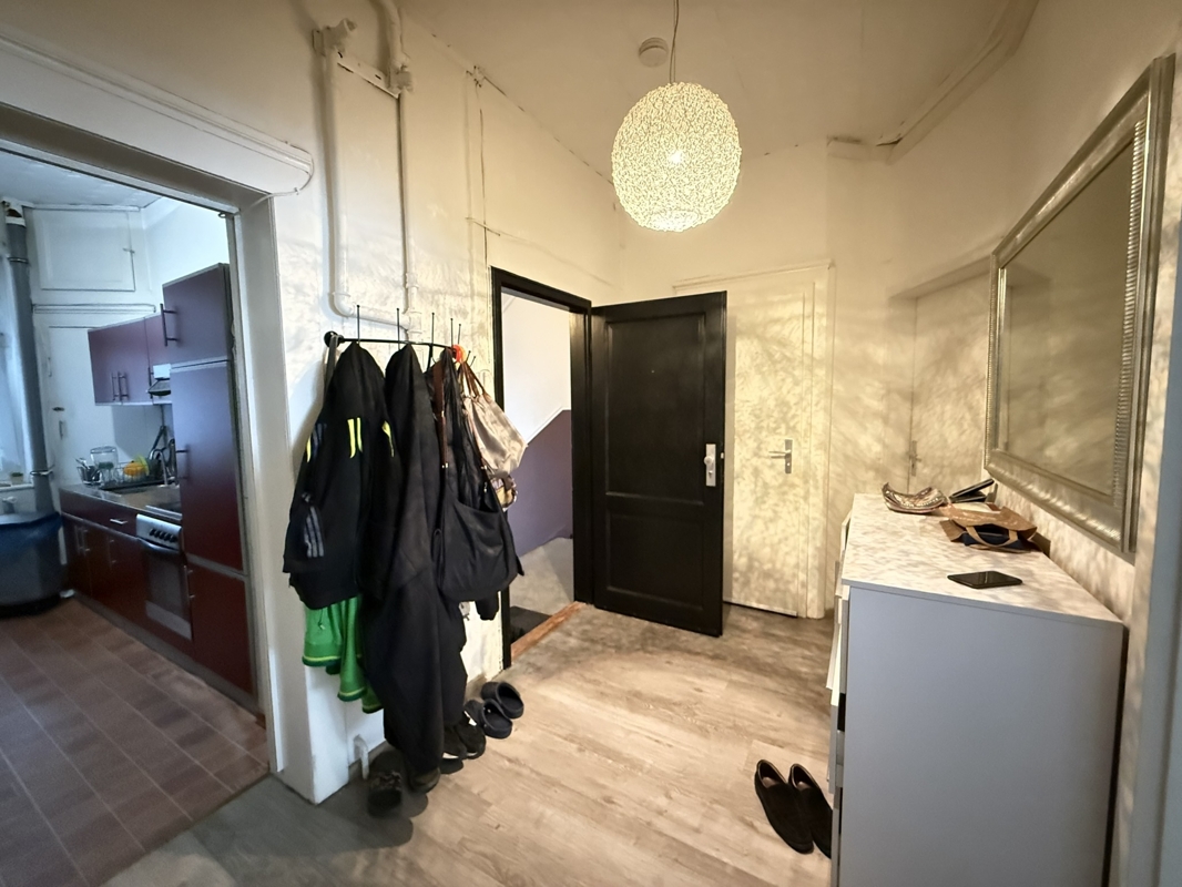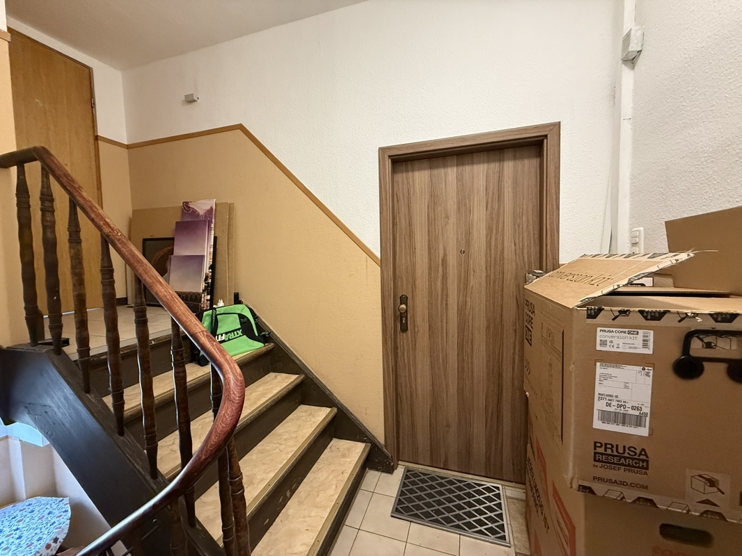 Das rechte Mehrfamilienhaus verfügt im Erdgeschoss über eine Gewerbeeinheit. In den oberen Etagen befinden sich jeweils zwei Wohneinheiten pro Geschoss mit drei Zimmern. Das Gebäude ist teilunterkellert, die Heizungsanlage wurde im Jahr 2022 erneuert.