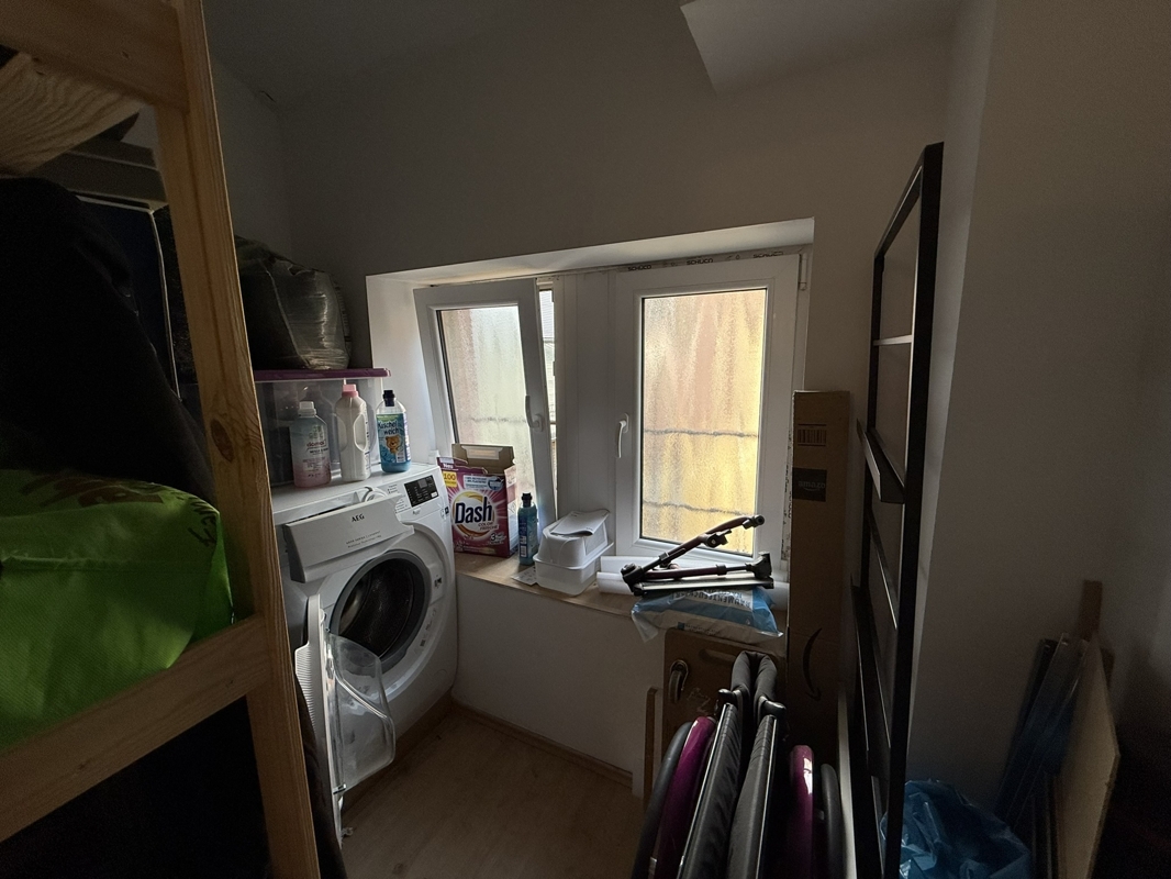 Der rückwärtige Anbau ergänzt das Ensemble um drei weitere Wohneinheiten: Jeweils eine 2-Zimmer-Wohnung mit Küche und Bad pro Etage vom ersten Obergeschoss bis ins Dachgeschoss. Hier wurden bereits dreifach verglaste Fenster verbaut, was für eine zeitgemäße energetische Ausstattung spricht.